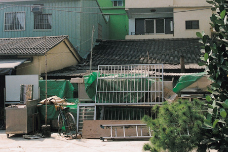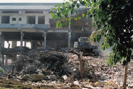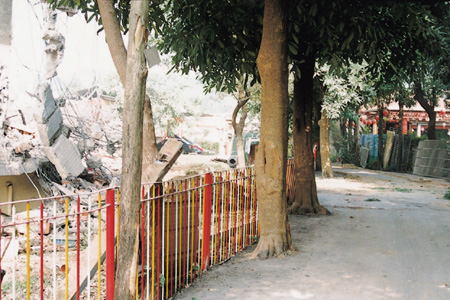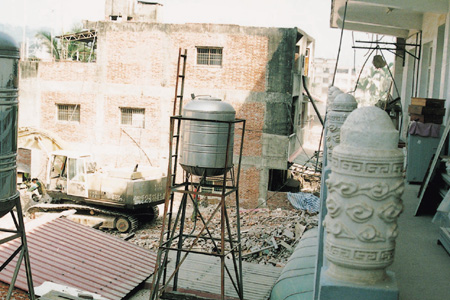 照片 A-03-A6 大雄寶殿大雄寶殿與附設幼稚園間的圖書館因損壞嚴重,正進行拆除。 |