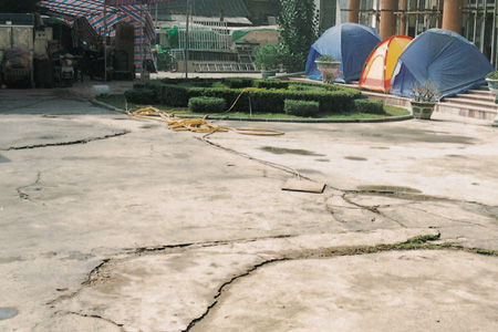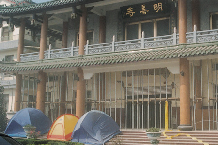 照片 A-03-A5 大雄寶殿大雄寶殿的階梯上仍搭建臨時性的帳篷。 |