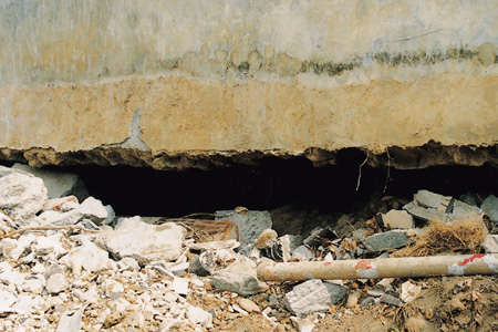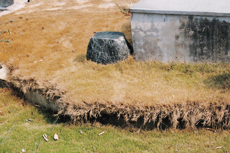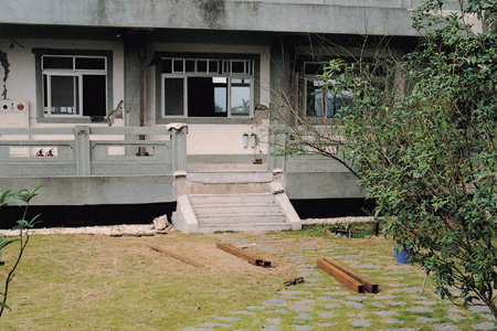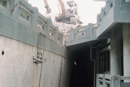 照片 A-04-A11 庭園左廂房前的庭園地面下陷約60公分。 |