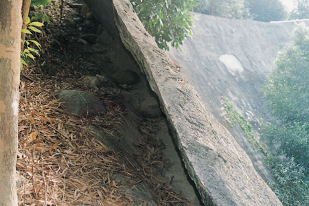 | 照片 A-04-A6 方丈大樓方丈大樓後方邊坡擋土牆已開裂。 |