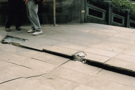 照片 A-04-A8 大雄寶殿大雄寶殿前亦有部分地面下陷, 深度約為5-10公分,