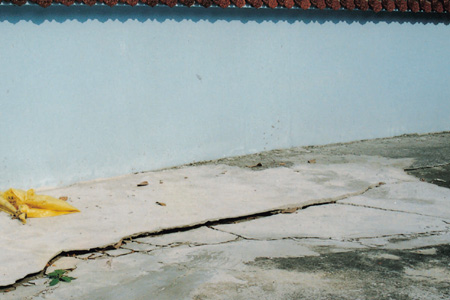 照片 A-10-A6 本師殿本師殿前庭磨石子有開裂情形。 |