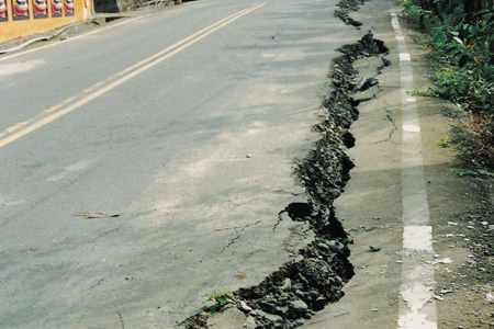 照片 A-10-A5 面前道路基地面前的道路因地層塌陷的關係, 造成道路下陷約30-60公分的深度。 |