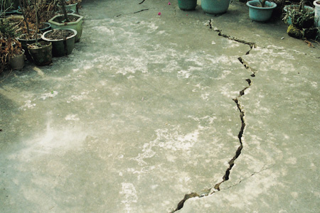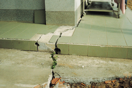 | 照片A-11-A2 周圍環境因地層滑動造成建築物與地面間開裂。 |