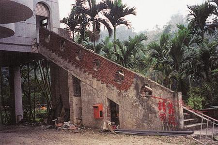 (3)樓梯量體比例過大,加上與正殿接合處樑位錯移嚴重,而僅靠兩根樑之端部與正殿環狀搭接,在地震搖晃過程中無法抵抗樓梯所產生之拉力而被拉斷,導致整座樓梯嚴重破壞。