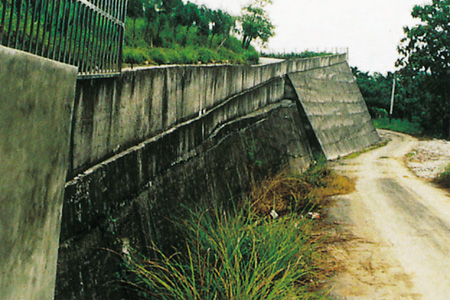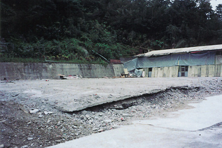 (3)地層向山谷滑動,導致聯外道路旁之擋土牆產生開裂。