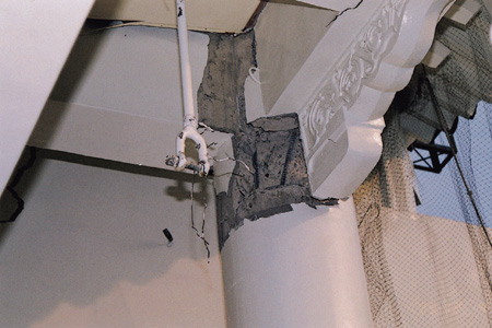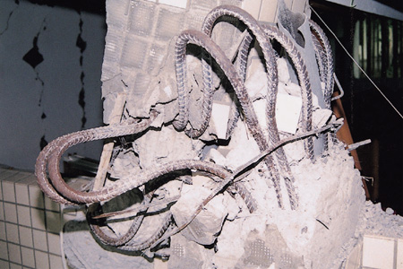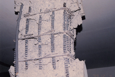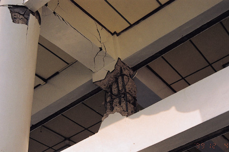 (1) 短柱及短梁效應,導致混凝土遭受剪力破壞,其箍筋間距亦明顯不足。