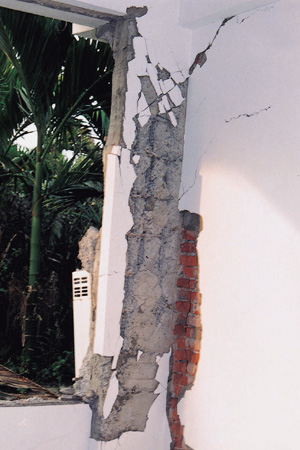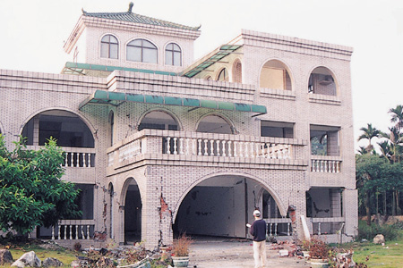 結構設計不良,導致柱位不整齊,無法有效抵抗地震力。