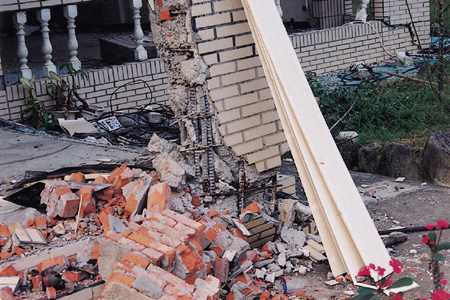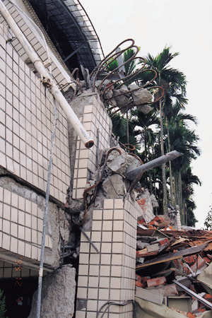 (1)因窗台之短柱效應及懸臂走廊,導致各層柱子折斷以致坍塌。