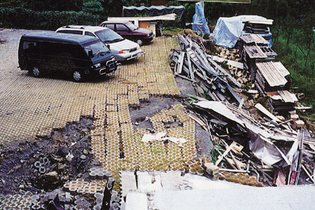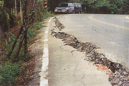 (1)基地位於山坡地,地震時地層滑動,導致聯外道路邊緣嚴重開裂。