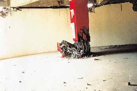 (2)柱腳部位遭扭斷。