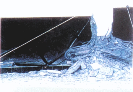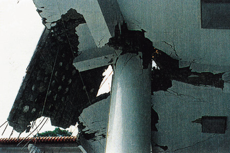 (8)念佛道場之柱箍筋不足主筋挫屈,整根柱被壓垮,樓版整層塌陷。