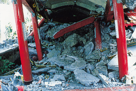 (9)迴廊柱頭被彎斷,屋頂塌陷,地層隆起。